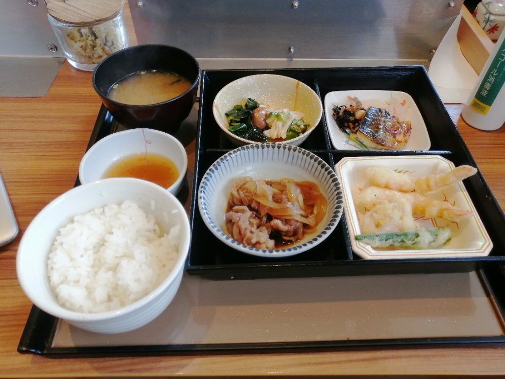 天ぷらもスーパーのお惣菜如くシナシナの衣で冷たいんだろうなと思ったらちゃんとアツアツでサクサク、さらにエビは弾力があってプリプリ。天ぷら用の出しにつければこれまたご飯がすすむ。ひじきとサバの塩焼きは塩の加減もよく、油も乗っている。
