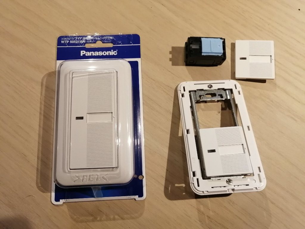 この上部に取り付けた黄色いやつが3路スイッチ。新しく買ったシングルから移植した。これで上は階段用の3路スイッチ、したは片切の廊下のスイッチとして使える。残ったシングルのほたる無しはいずれにせよリビングに必要なのでとっておく。