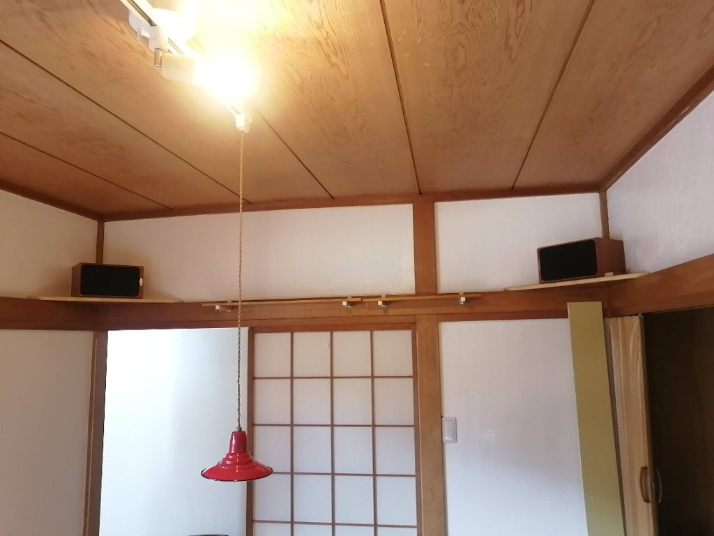 また、教室スペース内でレッスン中に何か物足りないと思ったらBGMがない。それを流すコンポーネントが組まれていない。それ以前にスピーカーがない。またそのスピーカーを設置する場所もない。ということでジモティで譲っていただいたIKEAのテーブルを解体して切断し、コーナーラックを作成した。
