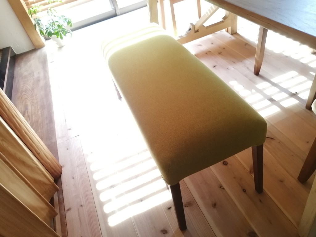 教室の椅子は今現在背もたれのついた椅子が4脚だが、旧竹田校ではスタッキングスツールを8脚置いていた。学ぶには前向きな姿勢になるようにと、背もたれのないシンプルなスツールで気に入っていたけれど、テナントを去るときにフリマで売ってしまった。今となっては惜しまれる。仕方ないので手持ちのベンチを試しに置いてみた。