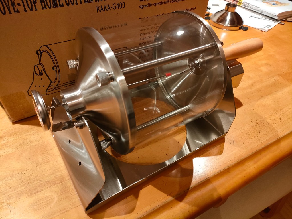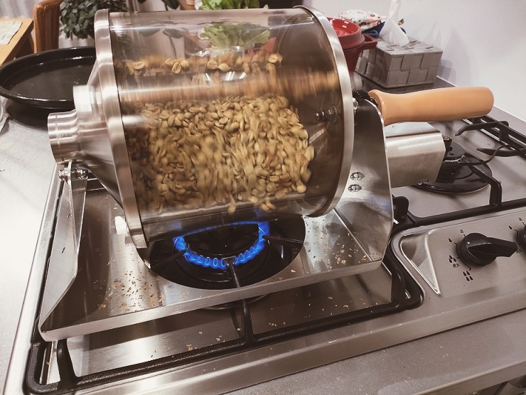 去年のいつかに家庭用兼業務用のコーヒー焙煎機を購入した。とある豆販売店のおじさんがまさにこの焙煎機を使って店の豆を焙煎していた。一時期そこの豆を買いに通ったが、ここ最近は生豆の仕入れから焙煎まですべて自分でやるようになってしまった。アマゾンでも普通に販売されているドラム式で石英ガラスを使ったこの焙煎機は、今までの鉄製フライパンとは比べ物にならないほどムラがなく、中が確認できるので絶妙なタイミングで焙煎を切り上げることができるようになった。そしてなにより腕がパンパンにならない。